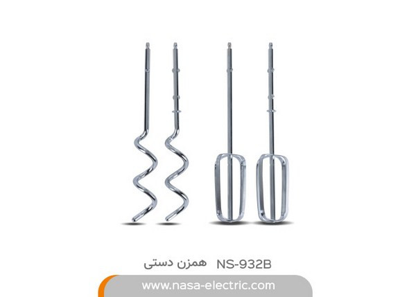 همزن ناسا الکتریک NS-932B دارای دو سری همزن و خمیرزن میباشد. این سریها بصورت دوتایی مورد استفاده قرارمیگیرند. در واقع برای ورز دادن خمیر باید هر دو سری خمیر زن را به بازوی همزن وصل کرد و برای هم زدن مواد نیز باید هر دو میله همزن را وصل نمود. جنس این میلهها از استیل ضد زنگ بوده و از کیفیت و مقاومت بسیار بالایی در برابر خوردگی و فرسایش و زنگ زدگی برخوردار هستند. میلههای همزن ساختاری چهار پره دارند و این چهار پرده بودن منجر به ایجاد مخلوط یکنواختتری در مدت زمانی کوتاهتر خواهد شد. بدنه اصلی همزن مدل NS-932B را باید به کمک یک دستمال مرطوب تمیز کرد. سریهای همزن را نیز میتوان با آب و مواد شوینده و حتی در ماشین ظرفشویی مورد شستوشو قرار داد.